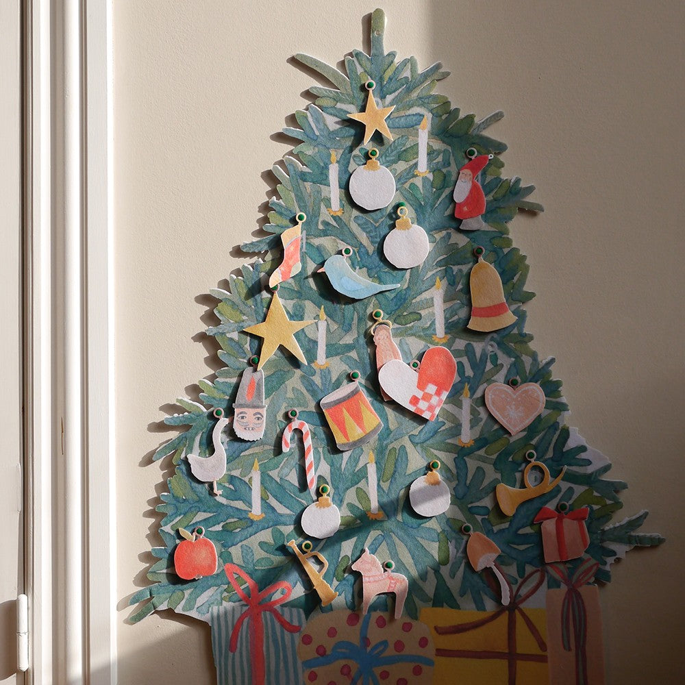 Giv julen en ny tradition med vores Filt Juletræ – en magisk julekalender, der skaber glæde og forventning hver eneste dag i december. Sammen med dit barn kan I tilføje et nyt stykke julepynt hver dag op til juleaften. Træet er dekoreret med tallene 1 til 24, så I kan tælle dagene og lade spændingen bygge sig op. Når juleaften endelig kommer, vil træet stråle med alle de små dekorationer, I har sat på sammen.