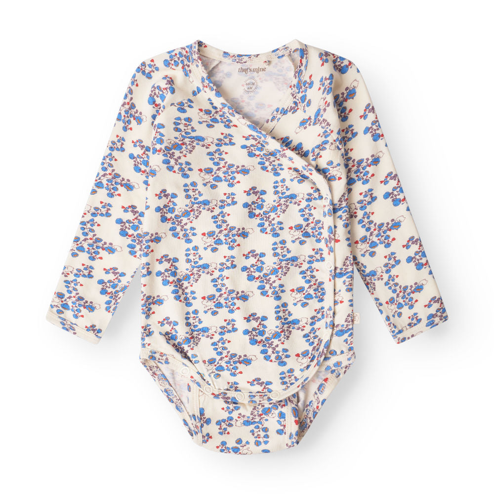 That's Mines Elia body med smukke detaljer, gør det nemt at putte din lille i denne bløde slå-om bodystocking og er en perfekt body til de nyfødte.