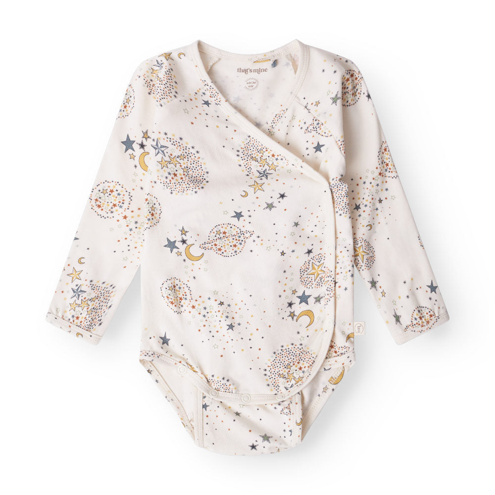 That's Mine Elimar wrap bodystocking - Million stars - 48% Organic cotton / 47% Modal / 5% Elastane Buy Bodystockings||Undertøj||personale||Basics til de små||AW25 here.