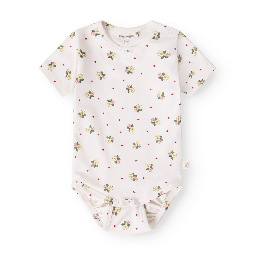 That's Mine Ellis SS bodystocking - Sweetheart Petals - 48% Organic cotton / 47% Modal / 5% Elastane Buy Bodystockings||Undertøj||personale||Basics here.