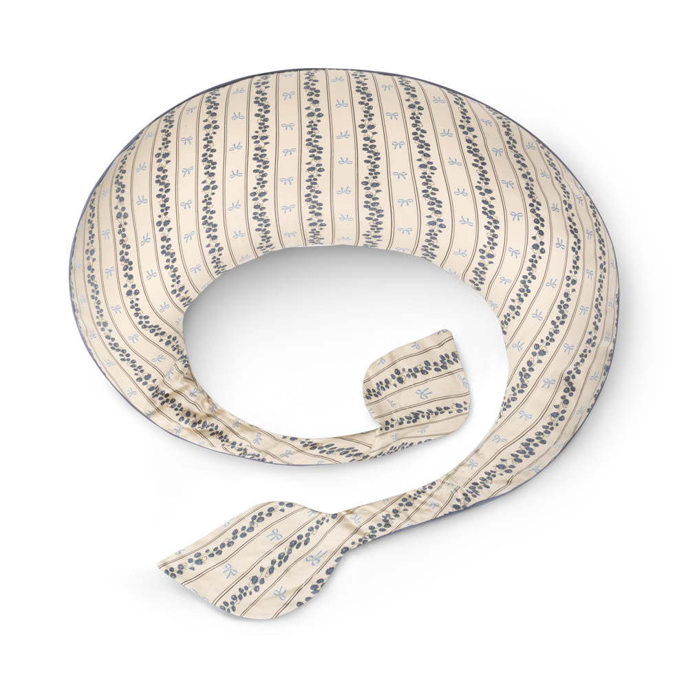 Denne skønne innovative og multifunktionelle ammepude er designet til de vordende og nybagte forældre for at give den bedste start på et helt nyt og fantastisk kapitel. Ammepuden imødekommer de vigtige behov, når babyen ammes eller gives flaske. Med denne nytænkende ammepude er det ingen udfordring at amme tvillinger, da længden er gjort lang og der dermed er plads til to babyer. Puden er praktisk og transportabel og skal blot bindes om kroppen. Denne funktion gør det særligt nemt, når man skal rejse sig for at løfte baby fra fx vugge til amning. I hver ende af ammepuden er der påsat et lille blødt blad, så babyen altid har en nusseklud ved hånden. Derudover er den formbar, så den er en behagelig støtte for mor og baby, når der ammes eller som en sovepude eller lændestøtte for den gravide. Samtidig er den en perfekt støtte, når babyen skal ligge på maven, som stol eller nakkestøtte, når barnet bliver større.