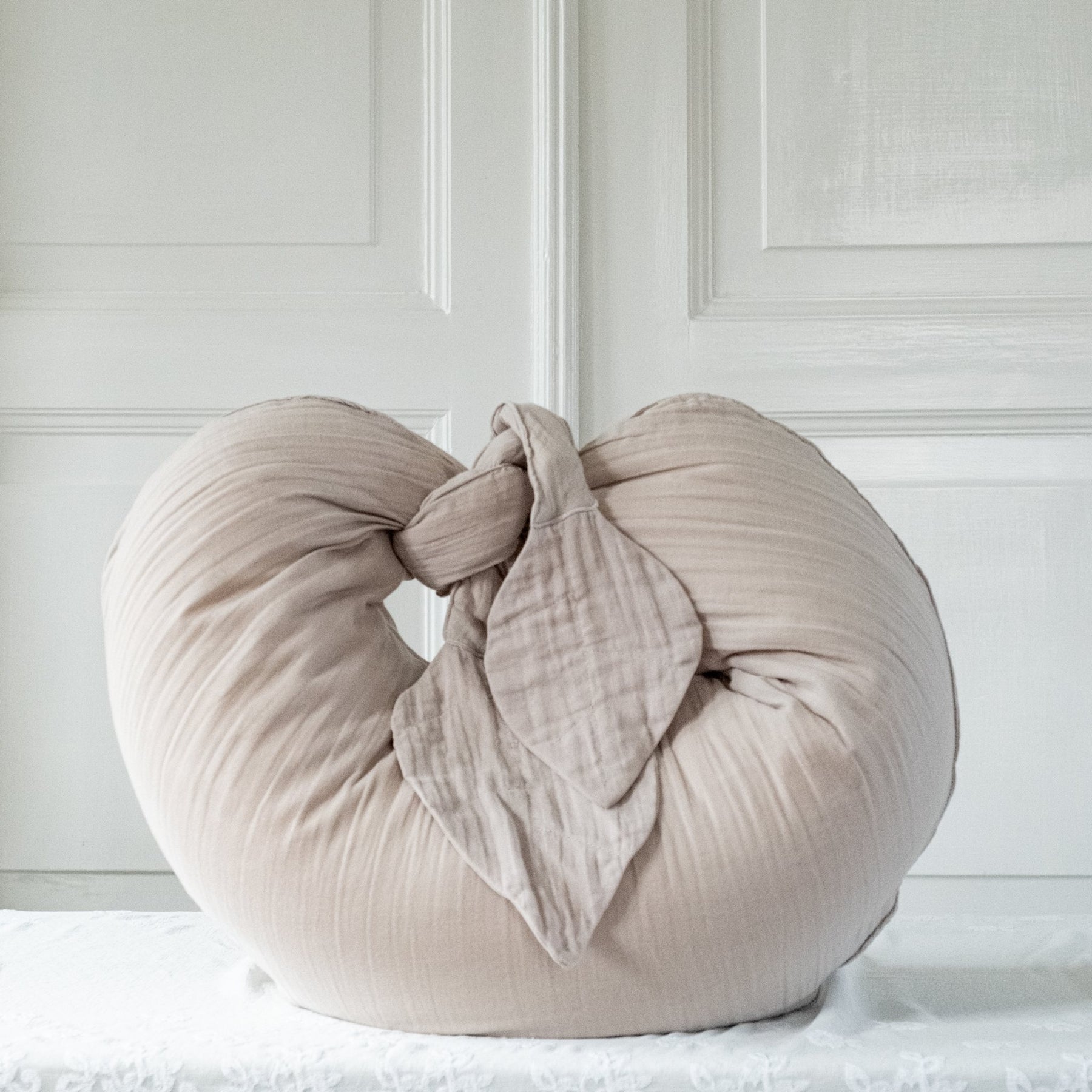 Denne skønne innovative og multifunktionelle ammepude er designet til de vordende og nybagte forældre for at give den bedste start på et helt nyt og fantastisk kapitel. Ammepuden imødekommer de vigtige behov, når babyen ammes eller gives flaske. Med denne nytænkende ammepude er det ingen udfordring at amme tvillinger, da længden er gjort lang og der dermed er plads til to babyer. Puden er praktisk og transportabel og skal blot bindes om kroppen. Denne funktion gør det særligt nemt, når man skal rejse sig for at løfte baby fra fx vugge til amning. I hver ende af ammepuden er der påsat et lille blødt blad, så babyen altid har en nusseklud ved hånden. Derudover er den formbar, så den er en behagelig støtte for mor og baby, når der ammes eller som en sovepude eller lændestøtte for den gravide. Samtidig er den en perfekt støtte, når babyen skal ligge på maven, som stol eller nakkestøtte, når barnet bliver større.