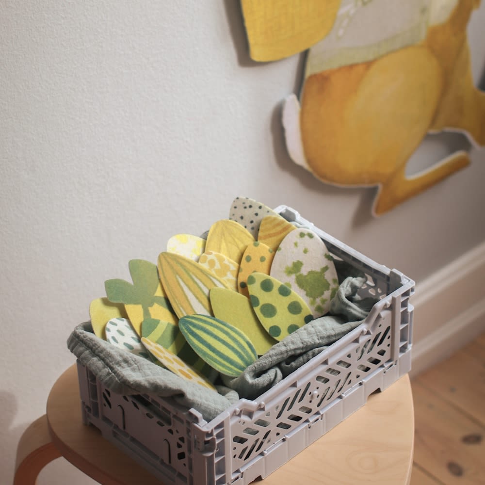 rundt omkring i huset og lad børnene gå på opdagelse efter æggene. Læg æggene ned i kurven og