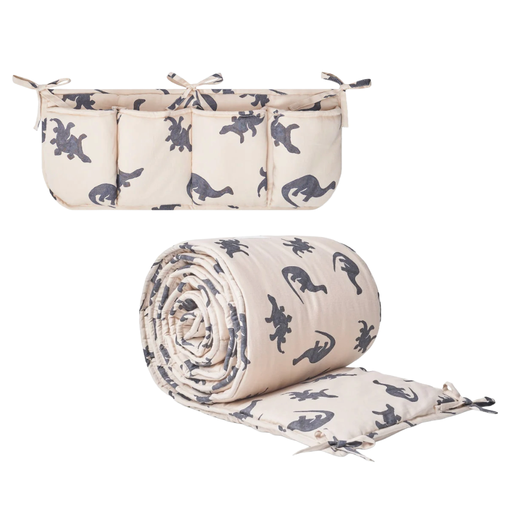 For at dit barn ikke støder ind i sengen eller mister sutten, har That's Mine designet denne sengerand som skaber ro og skærmer for forstyrrelser, så dit barn sover godt. Snorene gør at du selv kan vælge hvor den skal bindes fast - både oppe og nede. Sengeranden fra That's Mine er lavet af genanvendt polyester og beskytter barnet for stød mod sengen. Den er designet så den lille kan ånde igennem det, hvis barnet får lagt hovedet mod den. Det findes i mange smukke prints og kan sammensættes med andre produkter såsom sengetøj, stræklagner og sengelomme fra That's Mine.